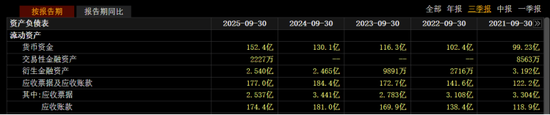 今年前三季度,中天科技营收同比增长10.65%,但归母净利润同比仅增1.19%,扣非后净利润增速更是低至0.61%,盈利增长近乎停滞,业绩尚未恢复至2022年同期水平。同时,公司应收账款处于174亿元高位,存货同比激增51.45%至历史同期新高,显著加剧了营运资金与坏账风险。